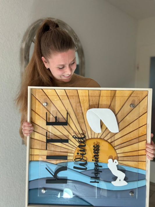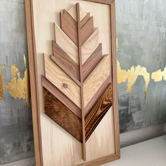 Holzbild Feder bunt, verschiedene Holzsorten kombiniert