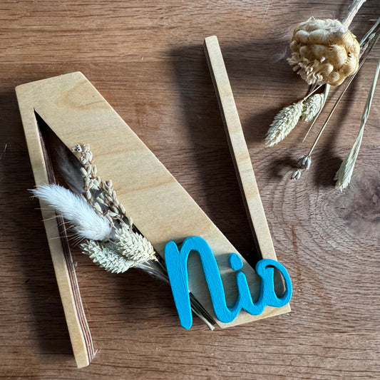Türschild Name mit Trockenblumen, Höhe 15cm