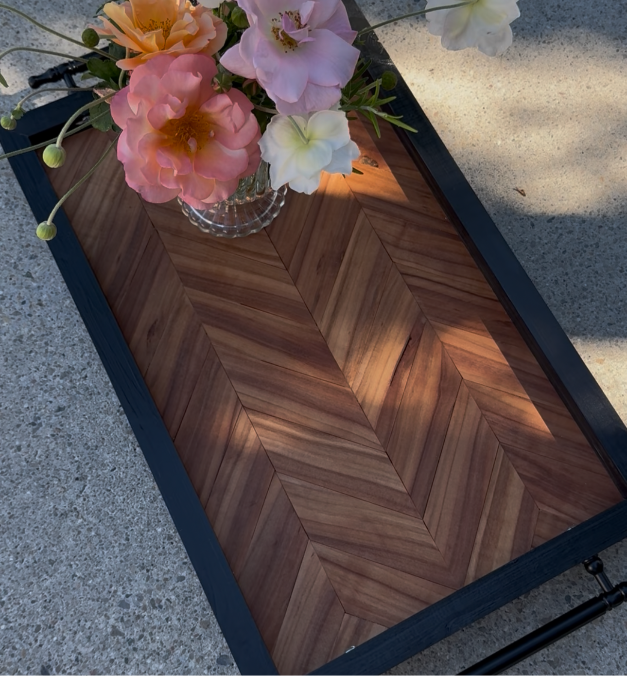 Jedes Tablett wird in liebevoller Handarbeit gefertigt und mit lebensmittelechtem Calendula-Öl behandelt, um die natürliche Schönheit des Holzes zu unterstreichen. Dennoch ist es ausschliesslich für dekorative Zwecke gedacht. Bitte nicht für Speisen oder Getränke verwenden und nicht direktem Wasserkontakt aussetzen.