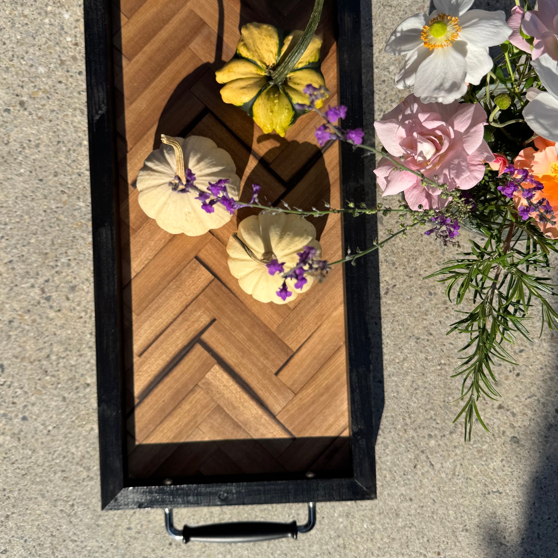 Jedes Tablett wird in liebevoller Handarbeit gefertigt und mit lebensmittelechtem Calendula-Öl behandelt, um die natürliche Schönheit des Holzes zu unterstreichen. Dennoch ist es ausschliesslich für dekorative Zwecke gedacht. Bitte nicht für Speisen oder Getränke verwenden und nicht direktem Wasserkontakt aussetzen.