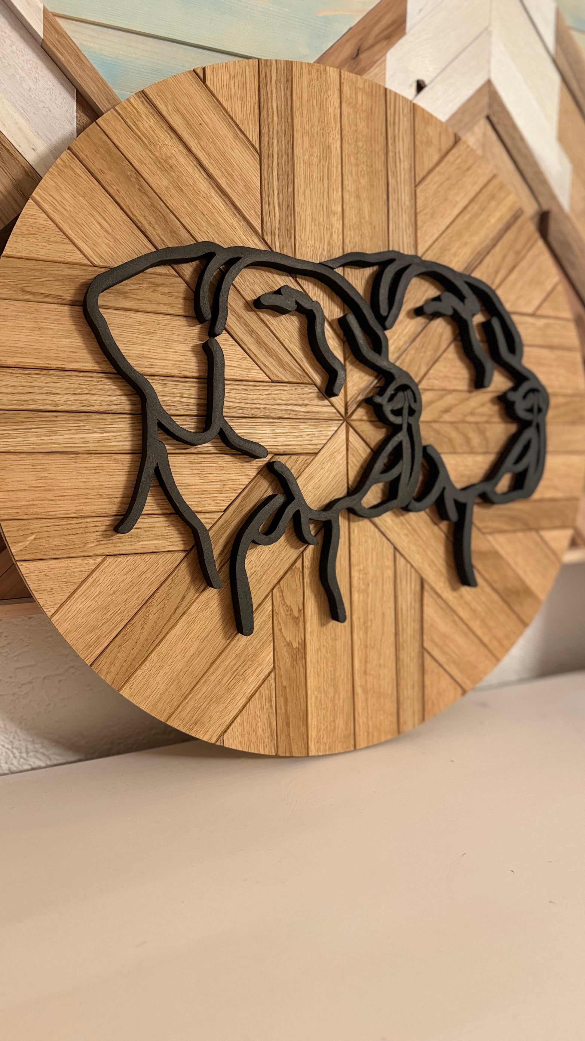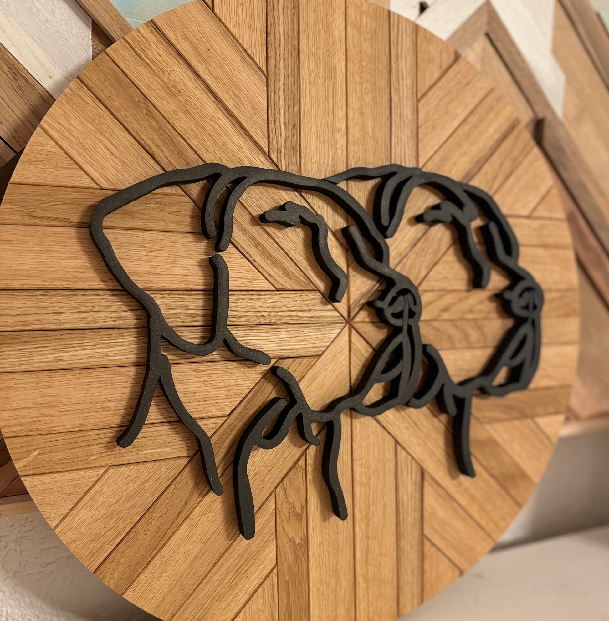 Als Highlight ist eine feine Silhouette zweier Doggen-Köpfe aus MDF-Platten montiert. Einfach das perfekte Statement Piece für jedes Zuhause von Hunde-Liebhaber:innen.