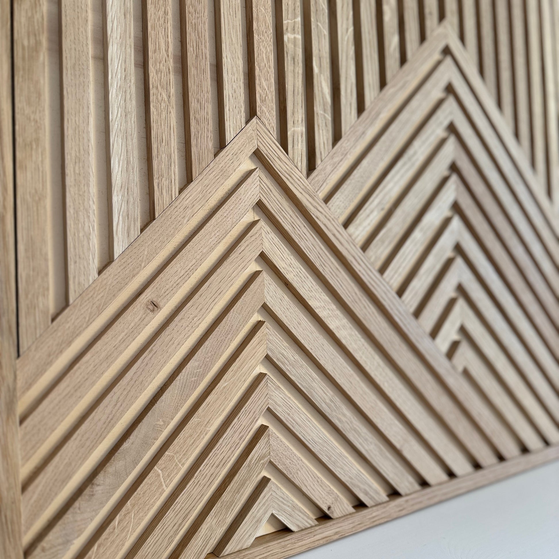 Dieses Holzmosaik aus Eichenleisten besticht durch seine natürliche Eleganz und Symmetrie. Die Holzmaserung ist wunderschön und erzeugt eine Ruhe und Natürlichkeit in jedem Zuhause.