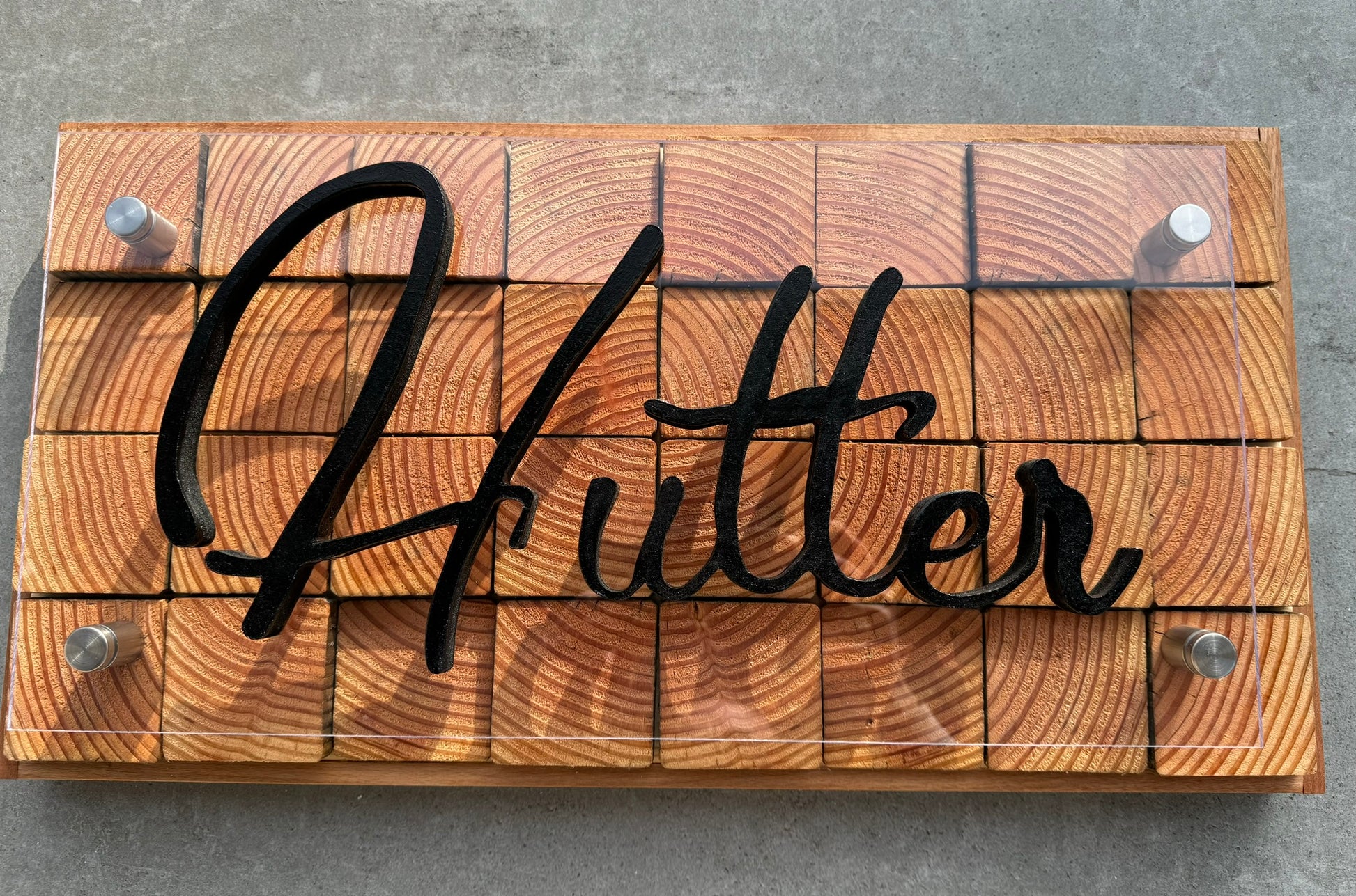 Darauf habe ich eine Acrylglasplatte montiert, um den Familiennamen wie gewünscht zu montieren. Als Namenstafel somit in jedem Eingangsbereich ein unglaublicher Hingucker und eine mal etwas andere Art, deinen Namen zu verewigen.