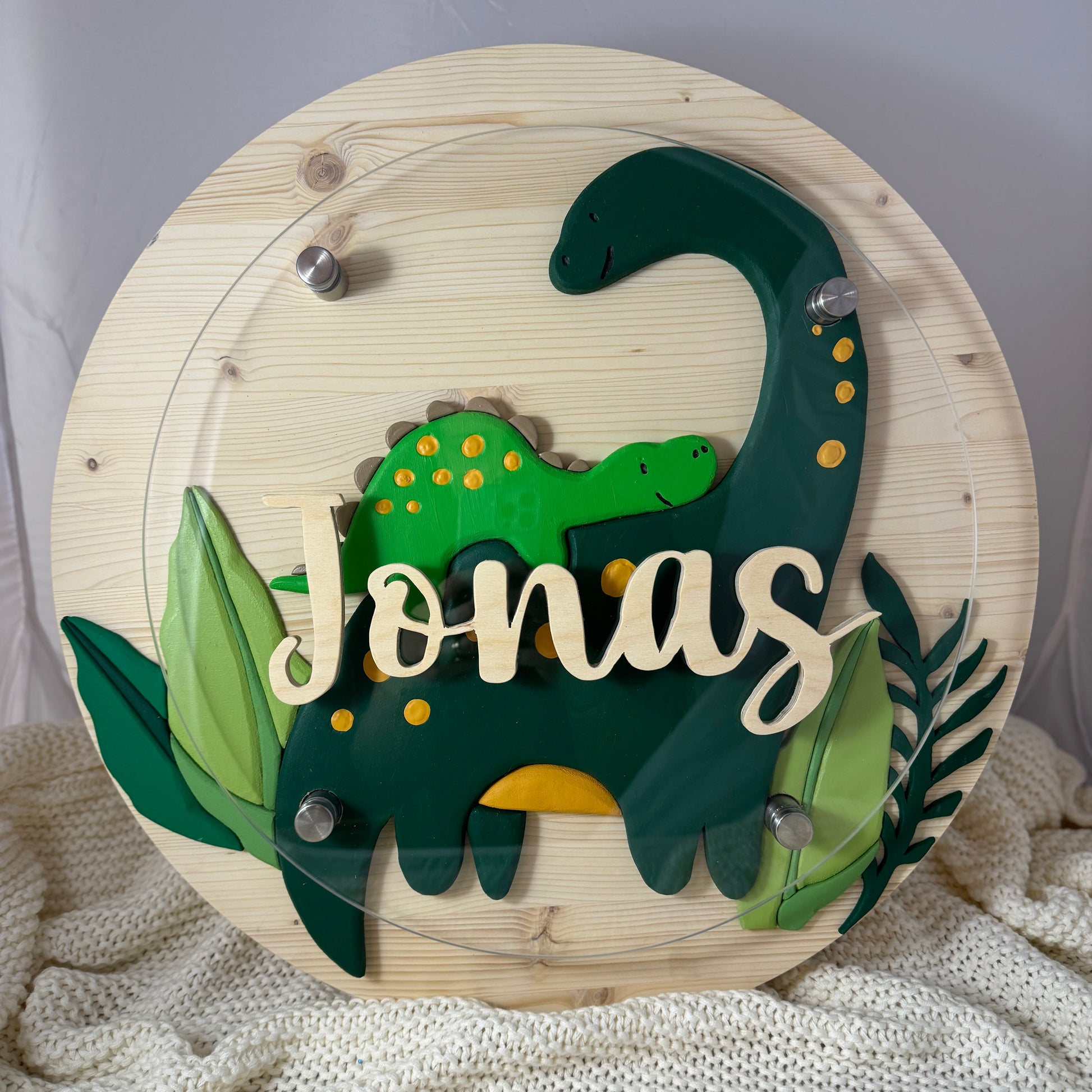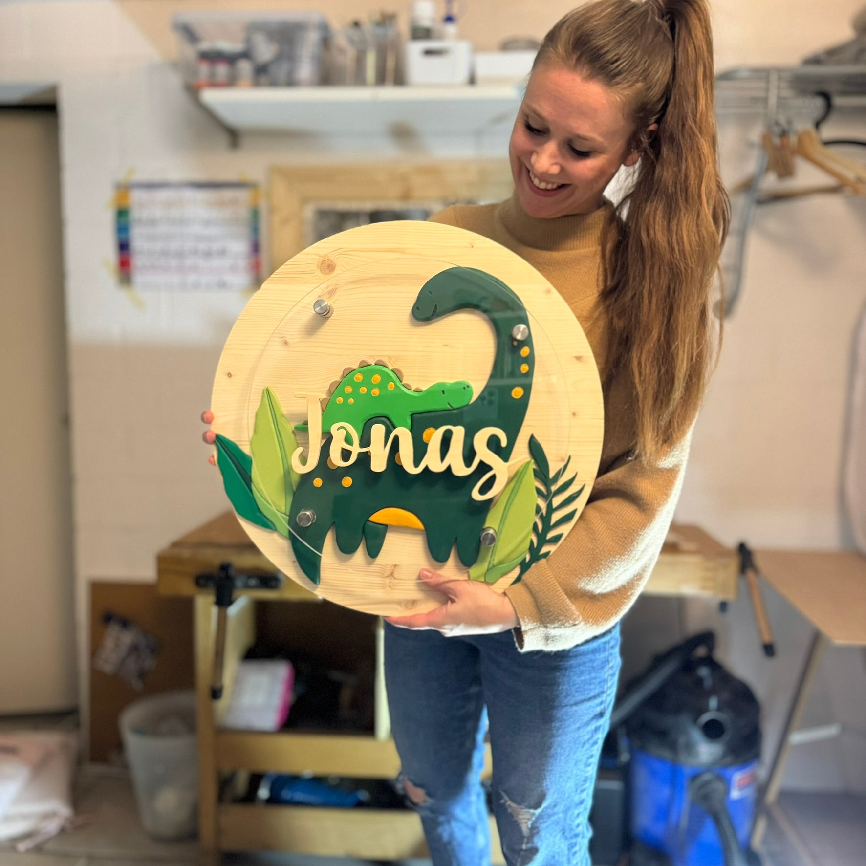 Namenstafel Dino, Rund 50cm inkl. Acrylglasplatte