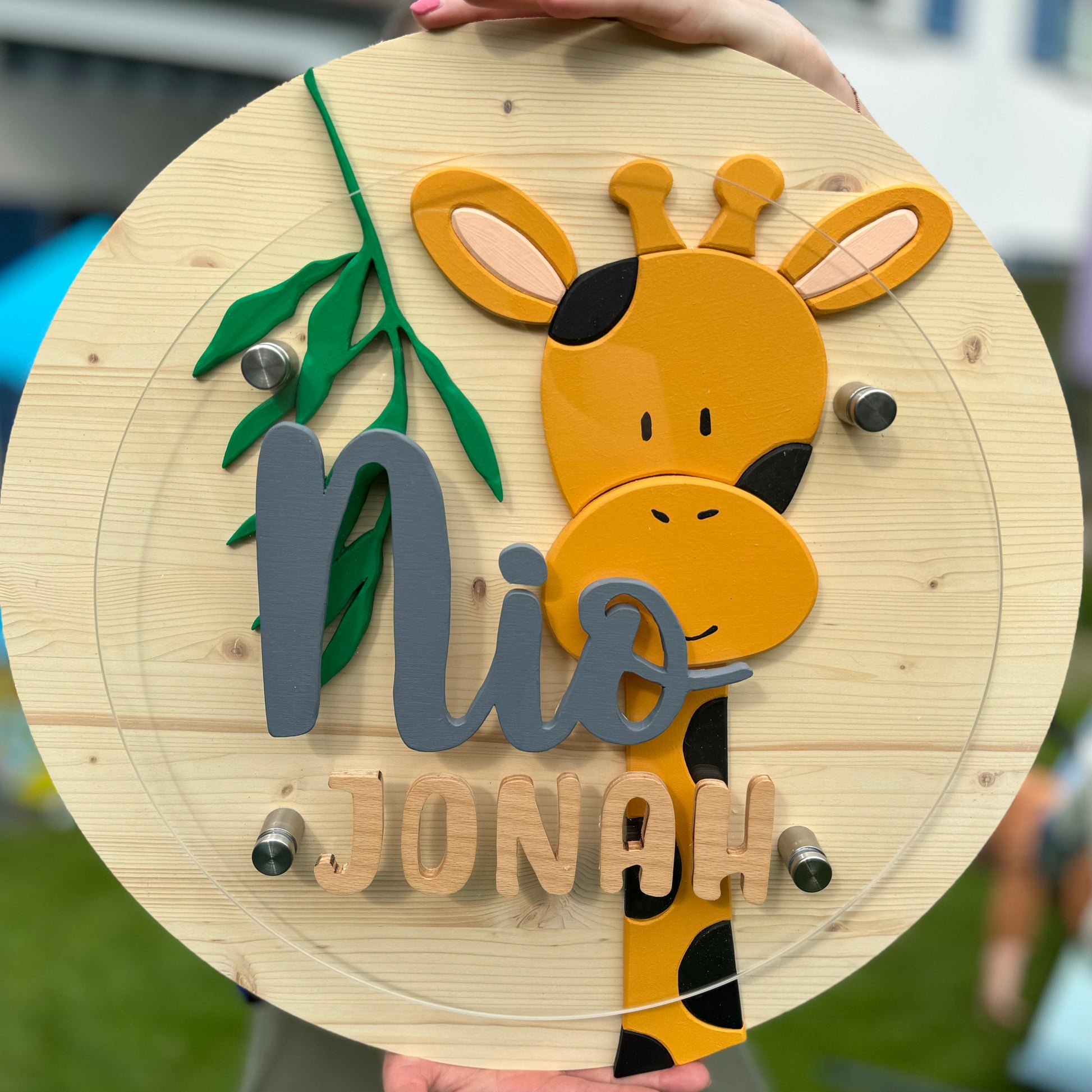 Namenstafel Giraffe Greta, Rund 50cm inkl. Acrylglasplatte