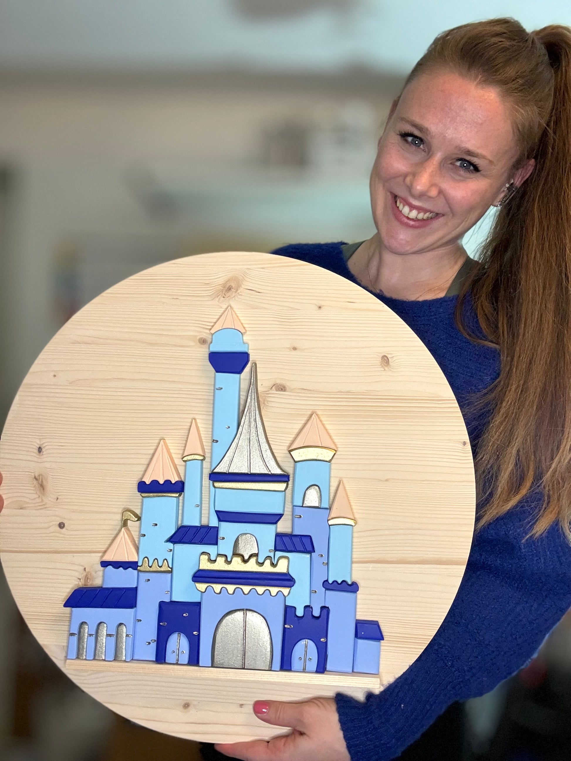Das spezielle Wandbild ist ein Blickfang in jedem Kinderzimmer und begeistert nicht nur Prinzessinnenfans. Aus 58 Einzelteilen ist das gesamte Motiv von Hand gefertigt und mit Liebe zusammengesetzt. Die Farben sind unglaublich und bilden einen perfekten Kontrast zur Fichtenplatte.